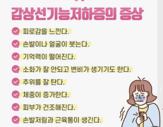 우리 몸의 대사 속도가 전체적으로 느려지면서 생기는 전신적 문제라고 하더라고요.