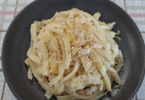 제가 발견한 황금 레시피는 소금+식초+설탕이에요. 도라지를 설탕 1큰술, 소금 1큰술, 식초 1큰술을 넣고 조물조물한 뒤 40분 정도 방치하면 쓴맛이 말끔히 사라져요.