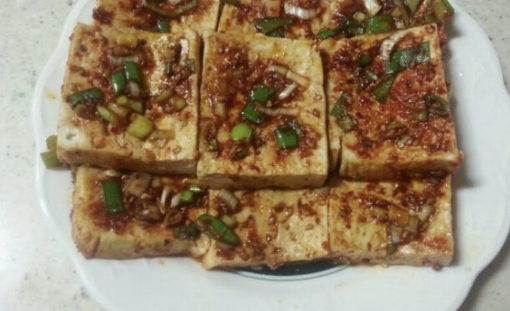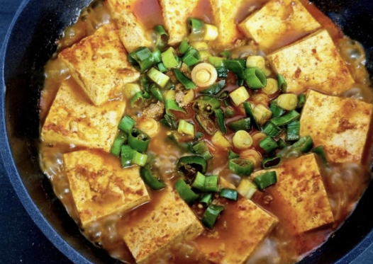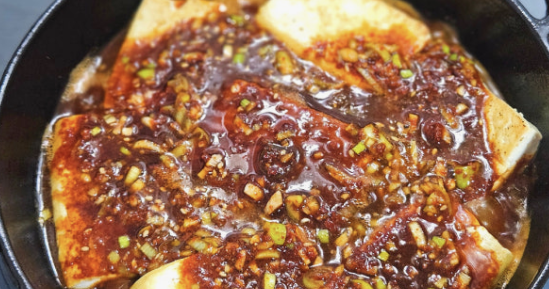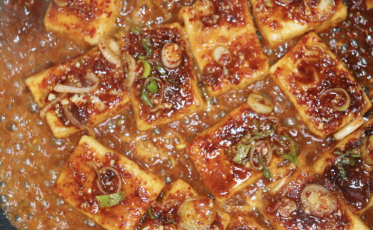 마지막에 송송 썬 대파나 홍고추 올리면 비주얼도 완벽! 윤기가 좌르르 흐르는 두부조림 완성입니다.