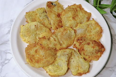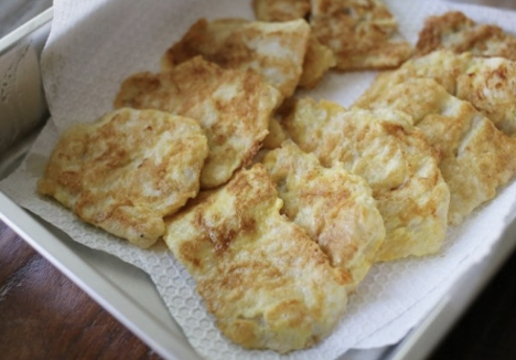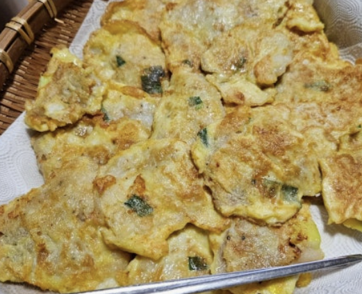 팬에 얇게 기름을 두르고 중 약불에서 천천히 부치면 충분하며, 기름에 튀기듯 부칠 필요가 없어 조리 후에도 전반적인 맛이 가볍습니다.