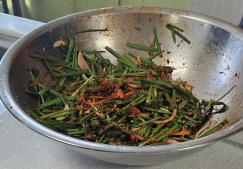 부추는 절대 손으로 비비면 안 돼요. 풋내가 확 올라와요. 젓가락으로 살살 섞어주세요. 마치 샐러드 다루듯이요. 이게 고깃집 맛의 진짜 비밀이에요.