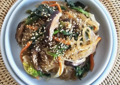 A. 네, 가능해요! 당면을 삶아서 각종 야채와 고기를 볶은 다음, 파기름과 굴소스로 간하면 돼요. 시간은 20분 정도 걸려요.
