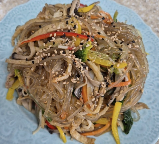 나만의 비법: 당면을 삶지 마세요! 삶으면 나중에 쉽게 불어요. 불린 당면을 바로 양념과 함께 볶는 게 비법이에요!