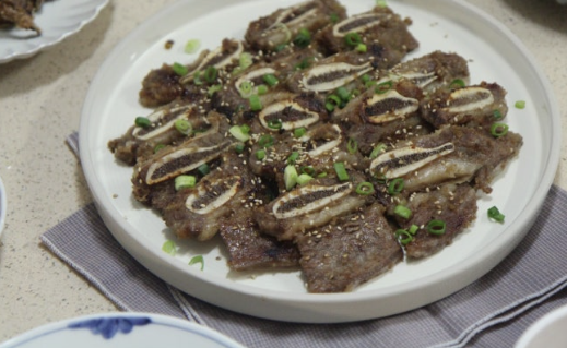 뼈를 잘라서 만드는 LA갈비는 뼛가루가 고기 표면에 박힌 채 남아있어서 흐르는 물에 적당히 헹궈주는 과정이 필요해요. 그냥 물에 담가두기만 하면 안 돼요.